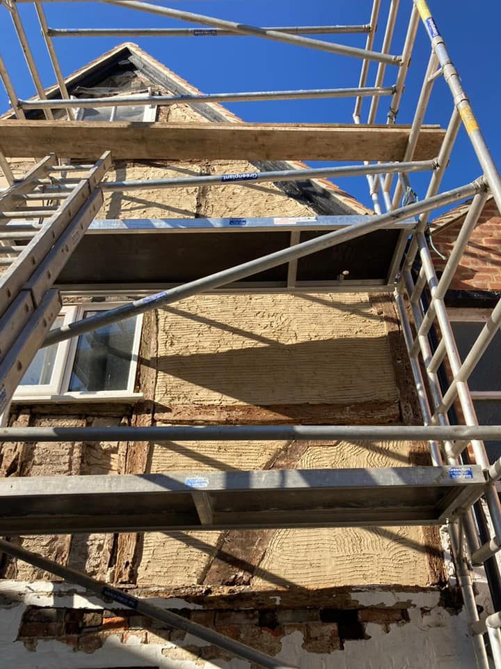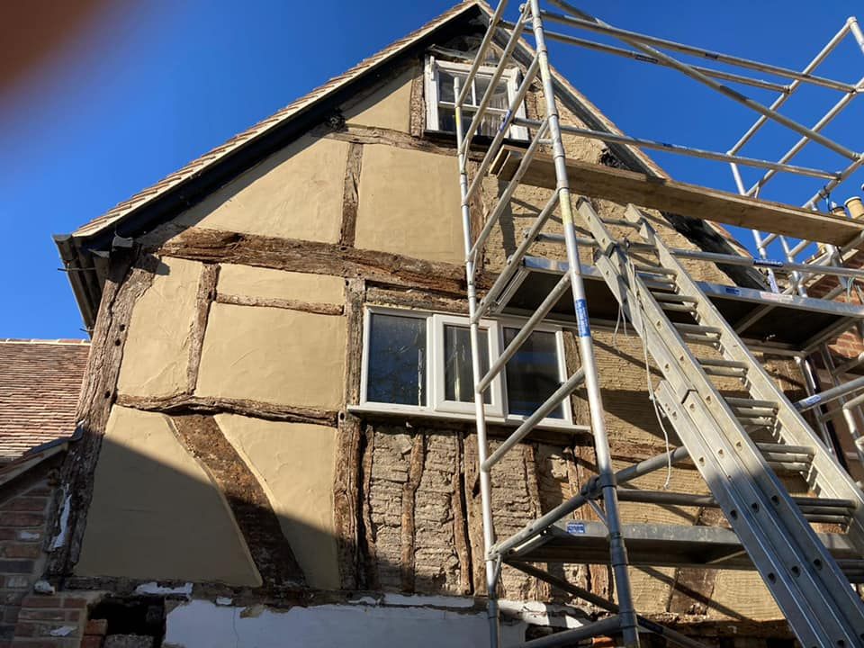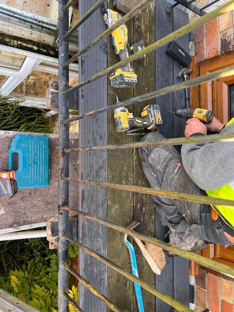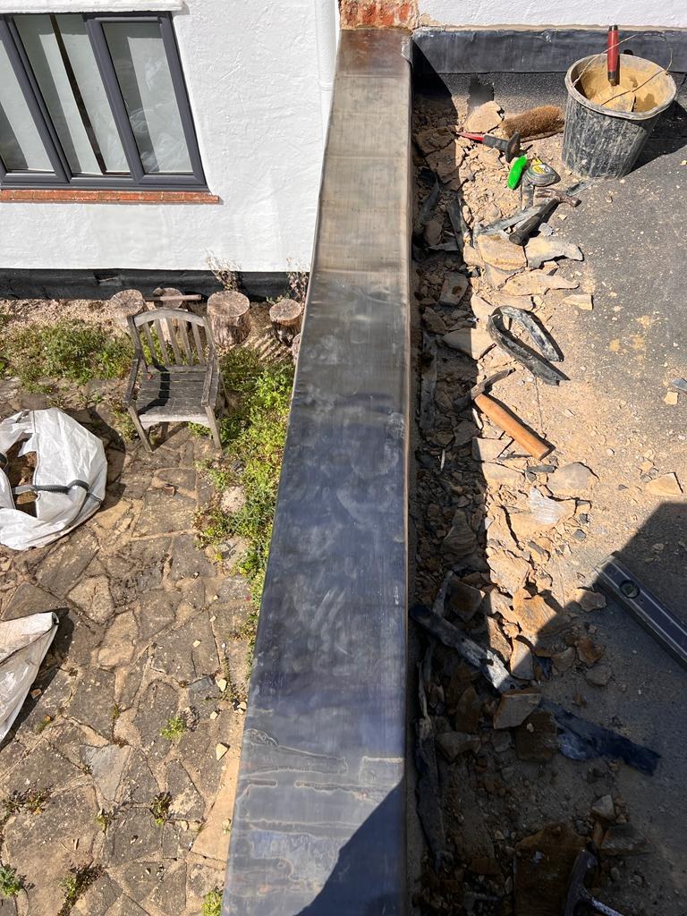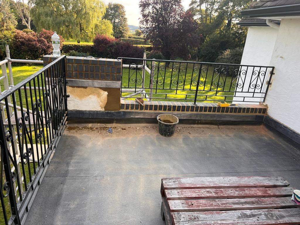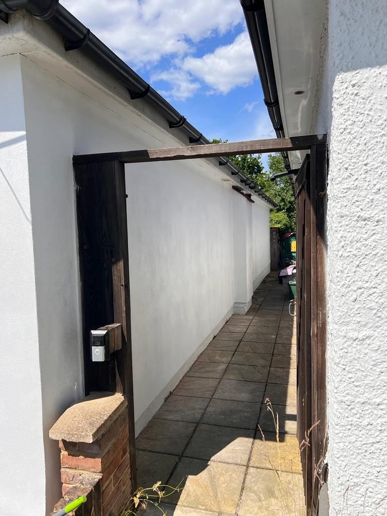 New lintel and rebuild of gable end, repoint patio, prep and repaint gates, replace bricks and reflaunch, entrance walls, replace blown windows and french doors, renovated kitchen work top (including replacing section behind sink)