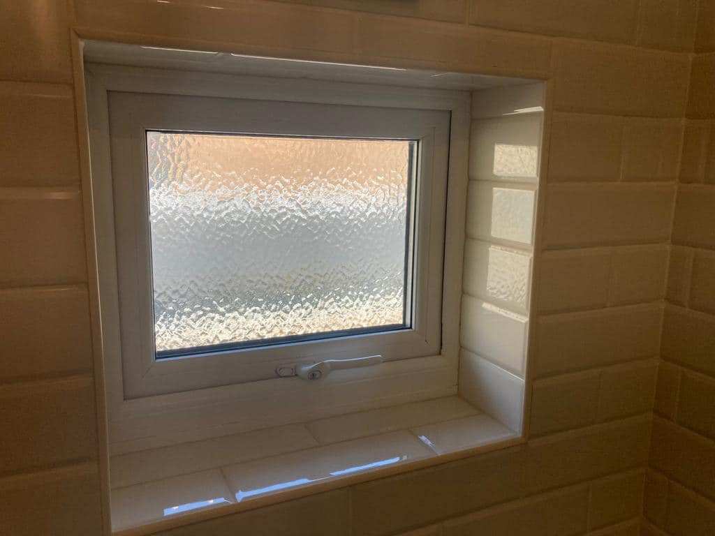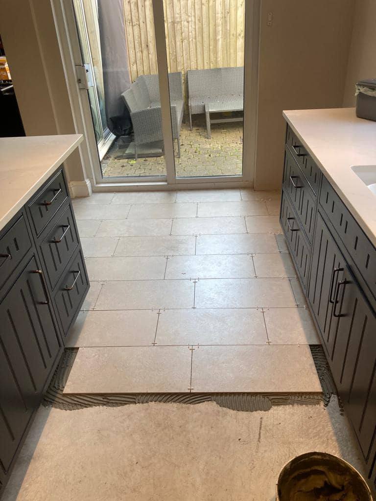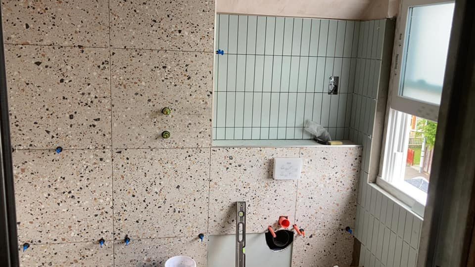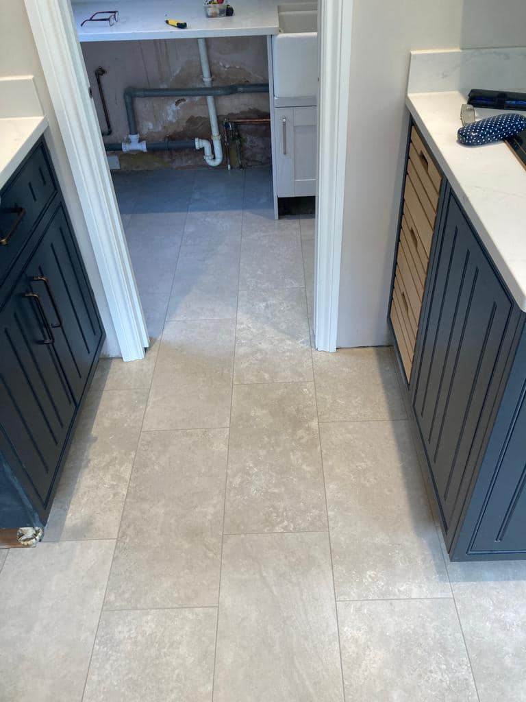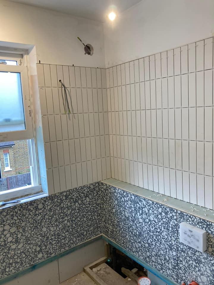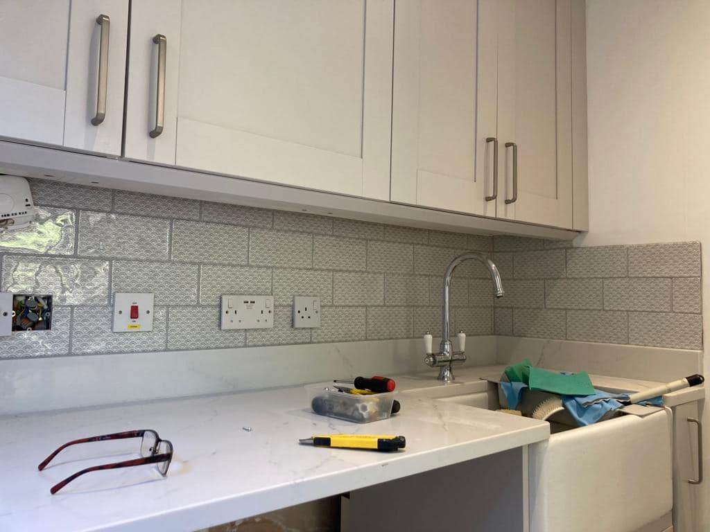 For this client we levelled and tiled the kitchen floor, replaced failed tiles around bathroom window and tiled their utility room splash back.