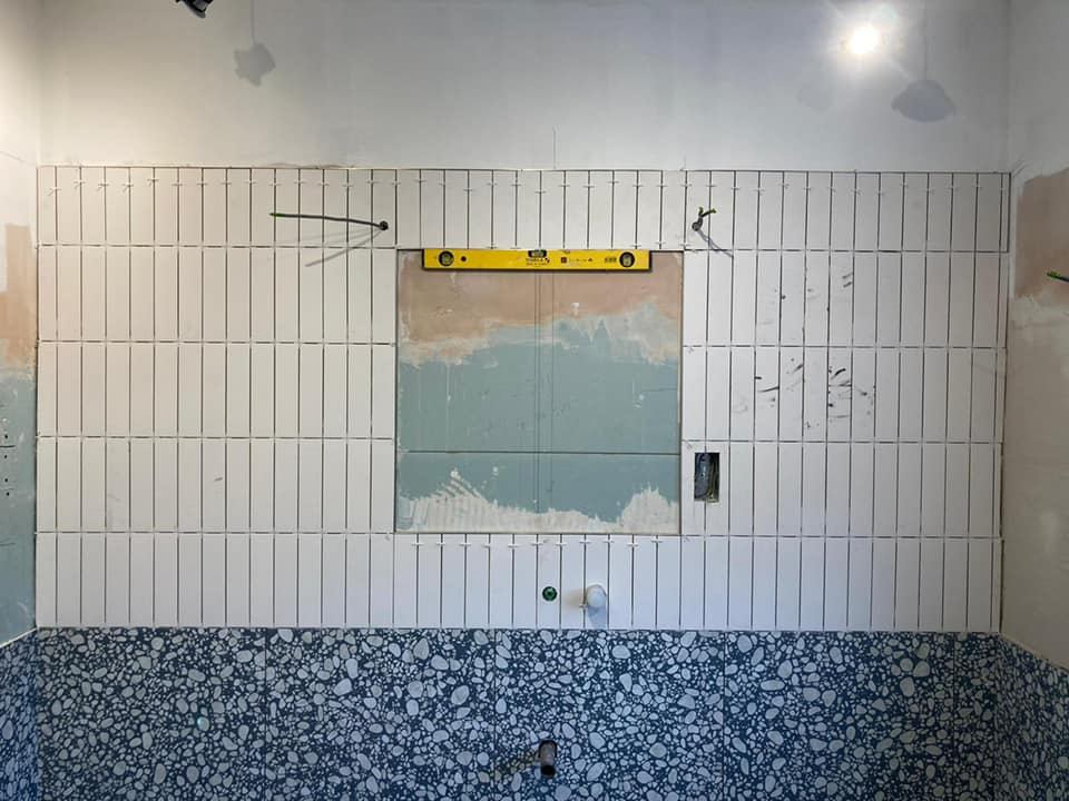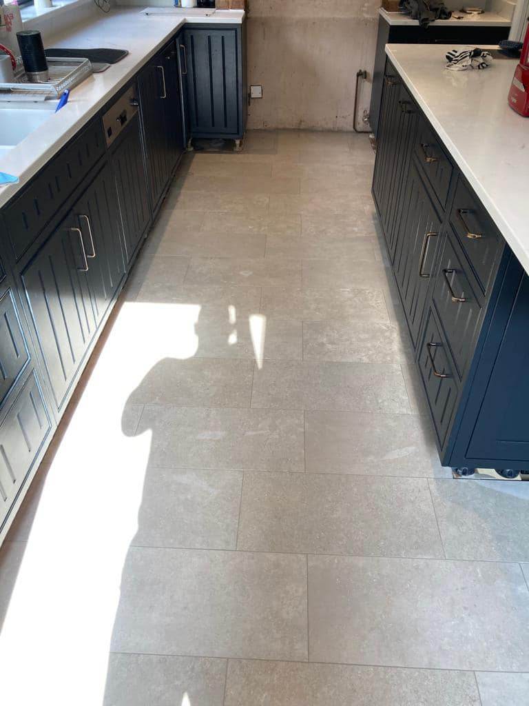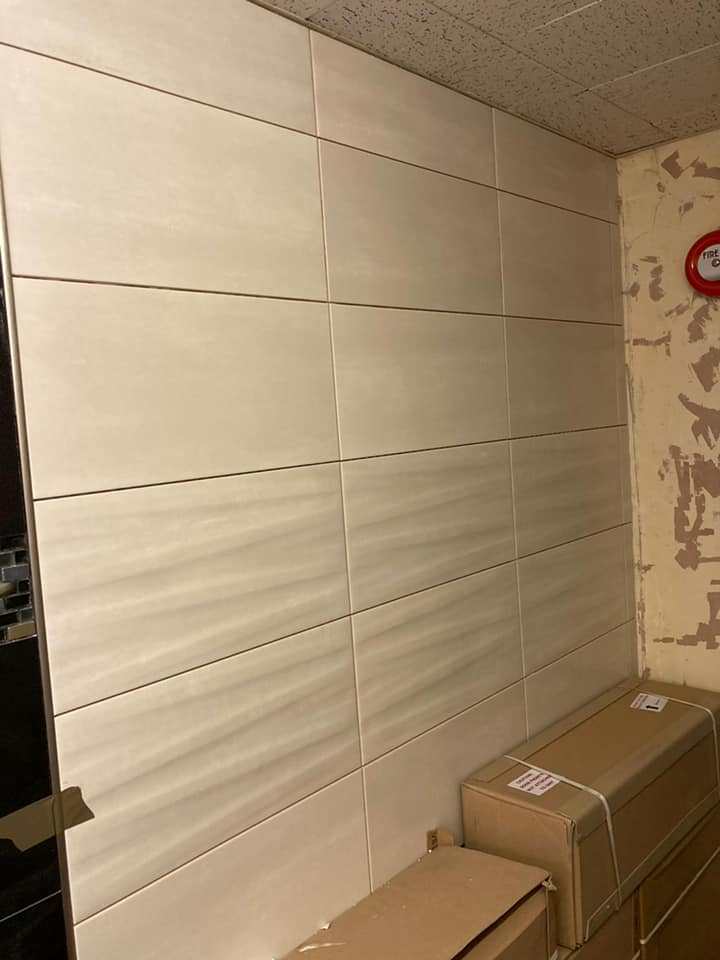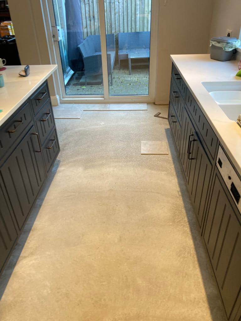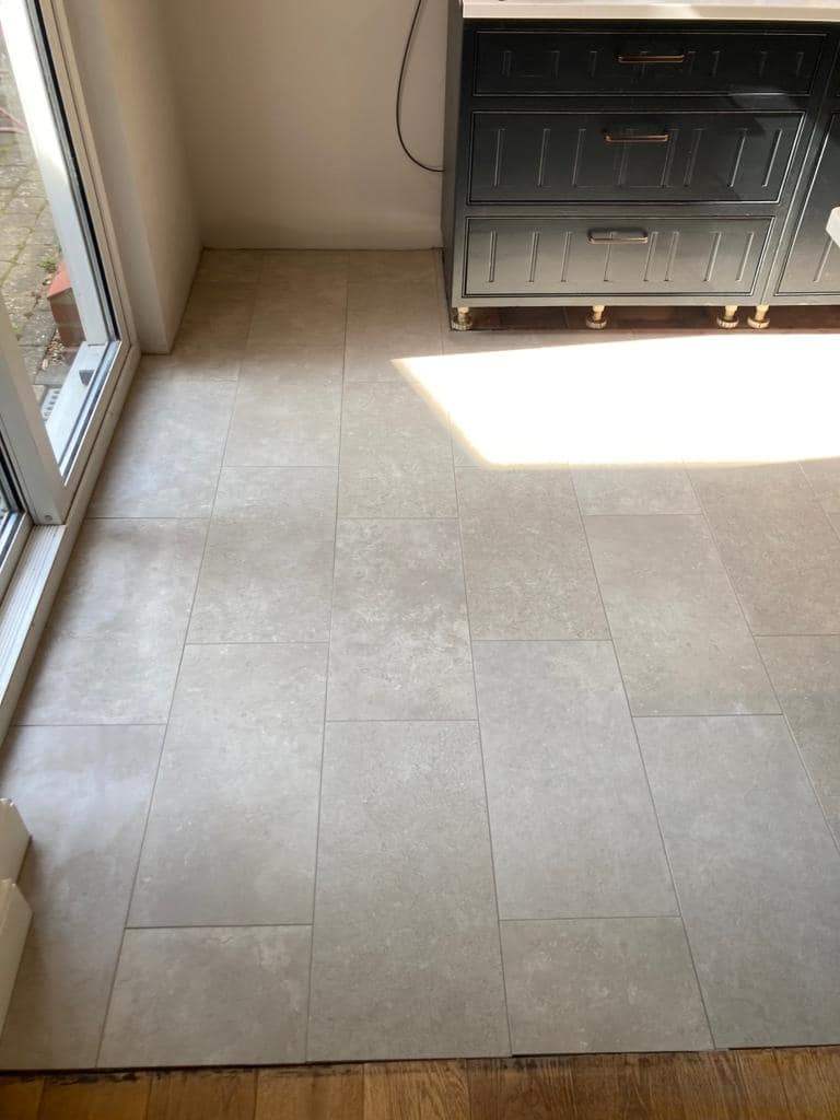 For this client we levelled and tiled the kitchen floor, replaced failed tiles around bathroom window and tiled their utility room splash back.