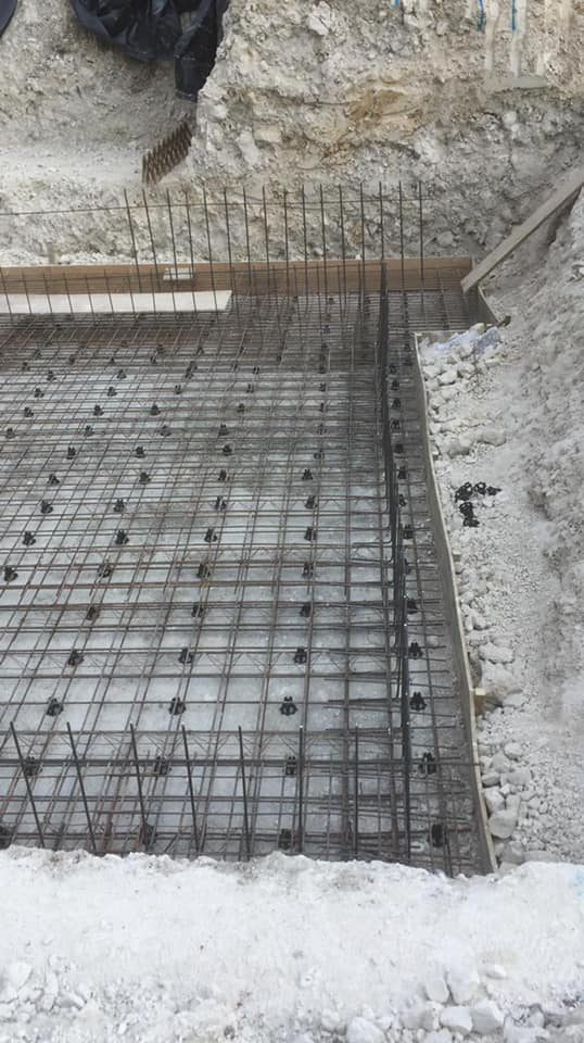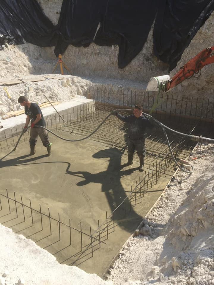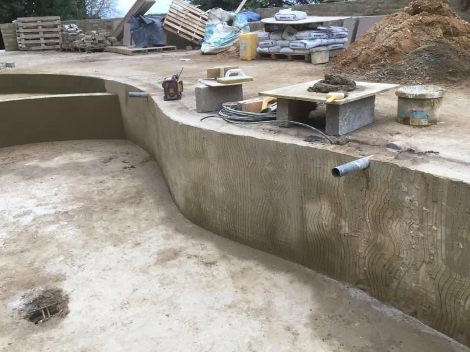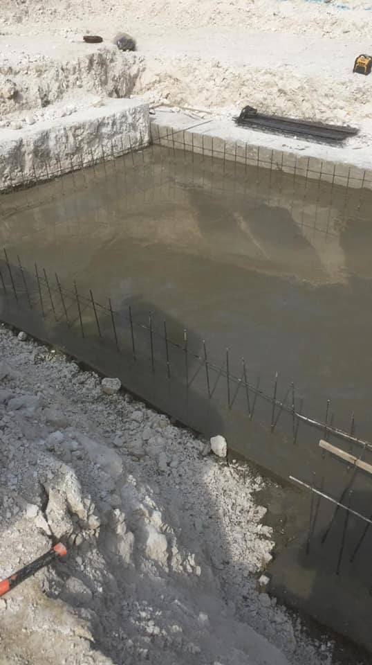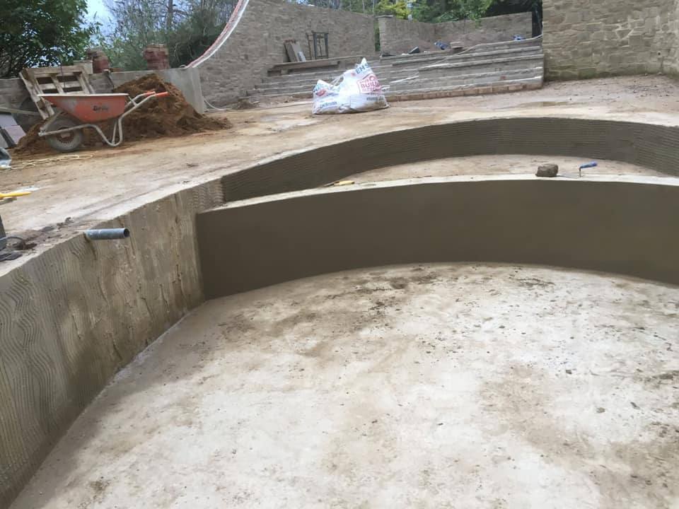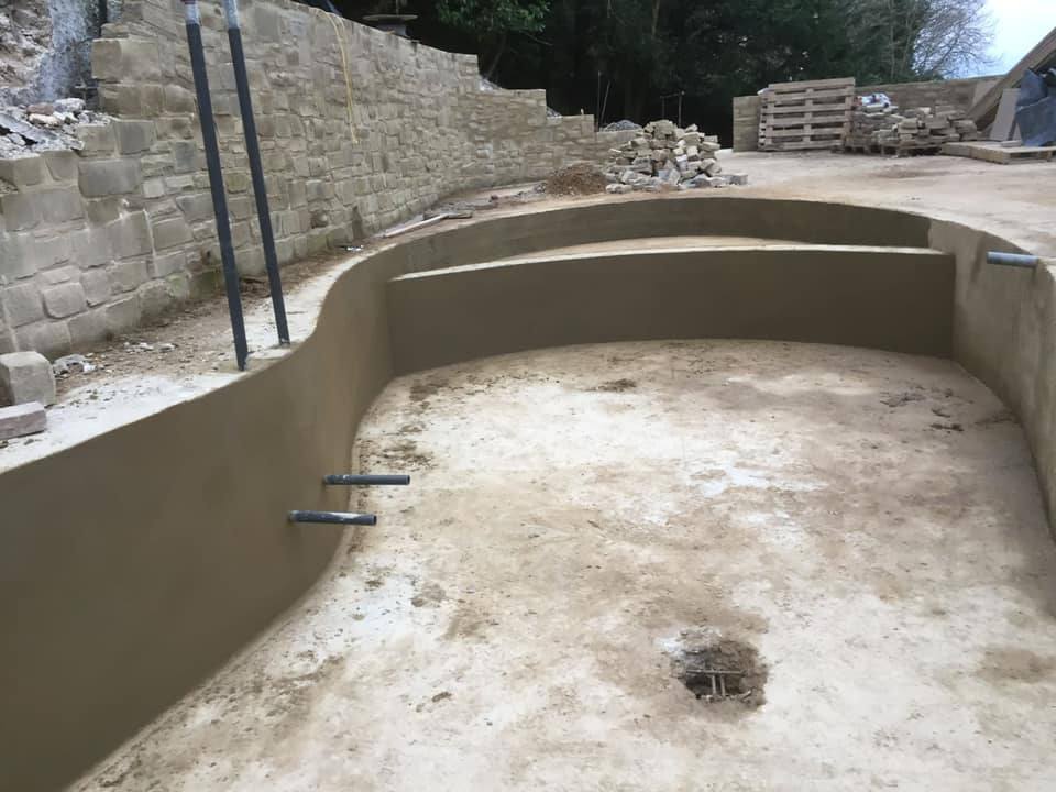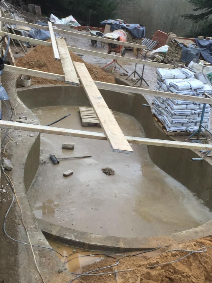 Swimming pool construction ready for the house to be built over the top, this project included laying over 2,000 concrete blocks in retaining wall, and having around 50 cubic metres if concrete pumped in.
