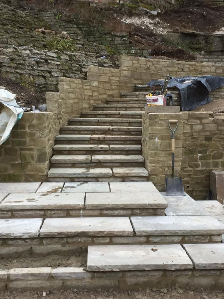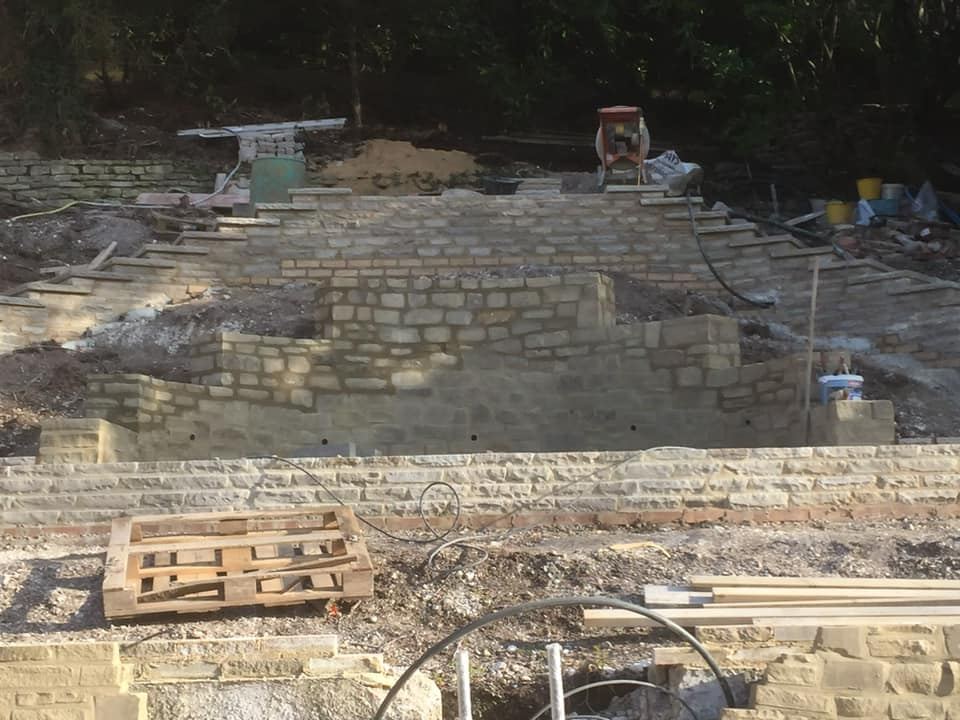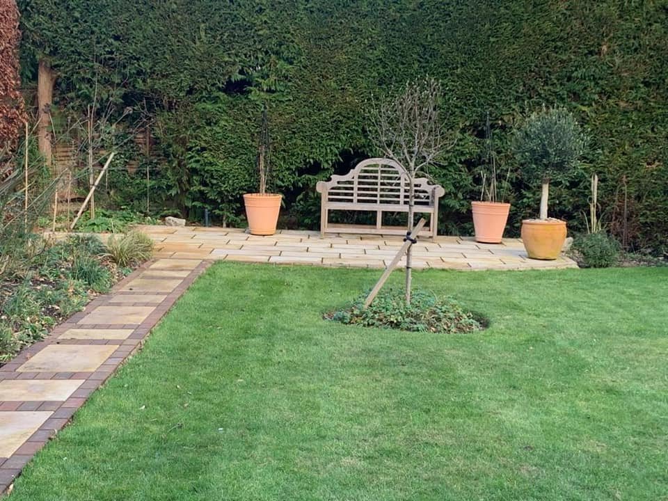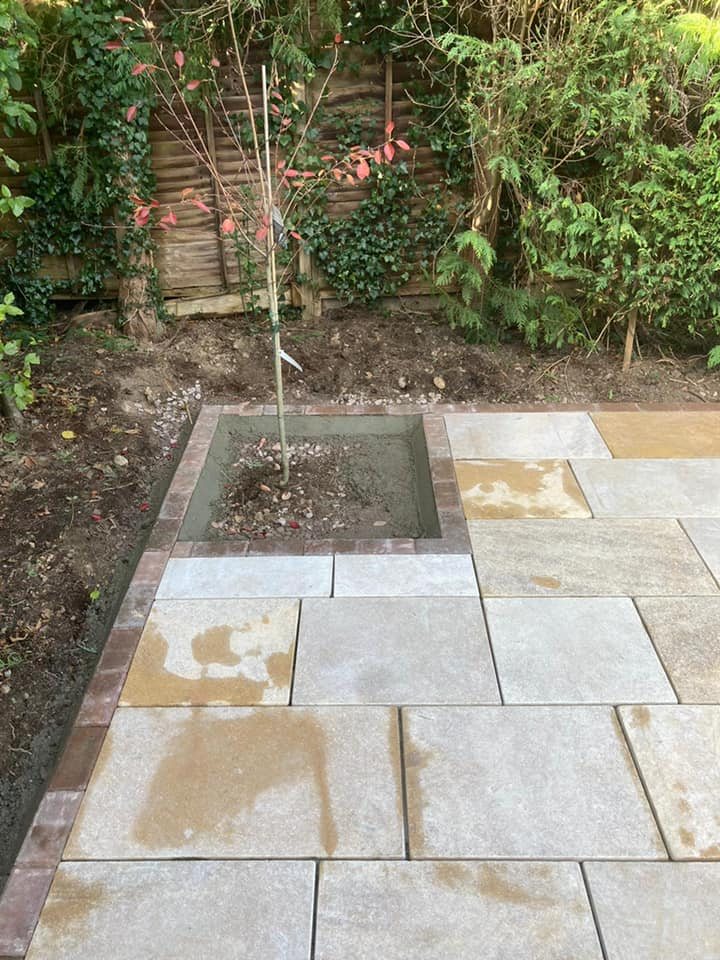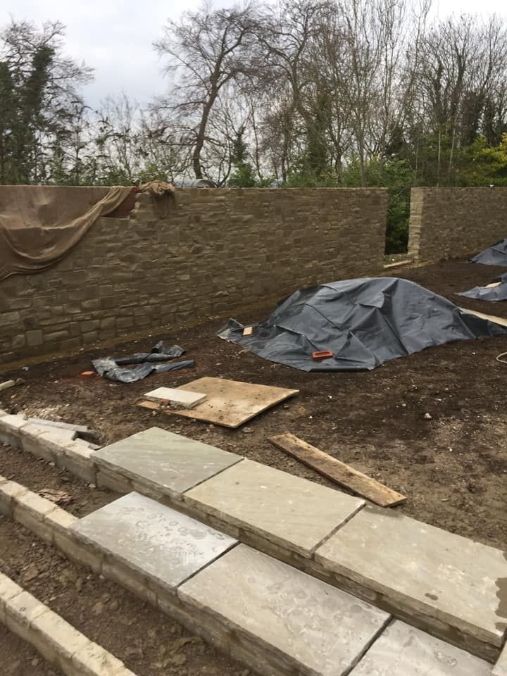 This was a project to convert a swimming pool into a pond and hard landscaping the surroundings.