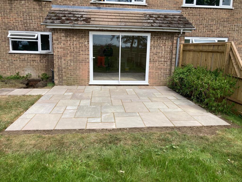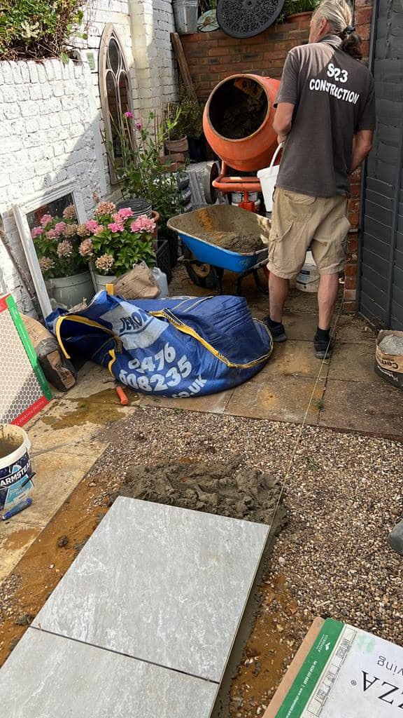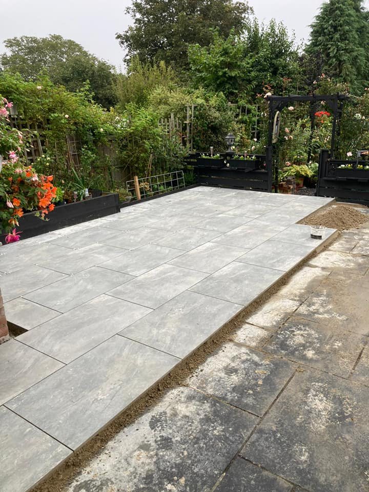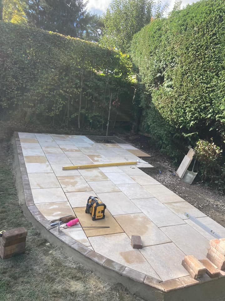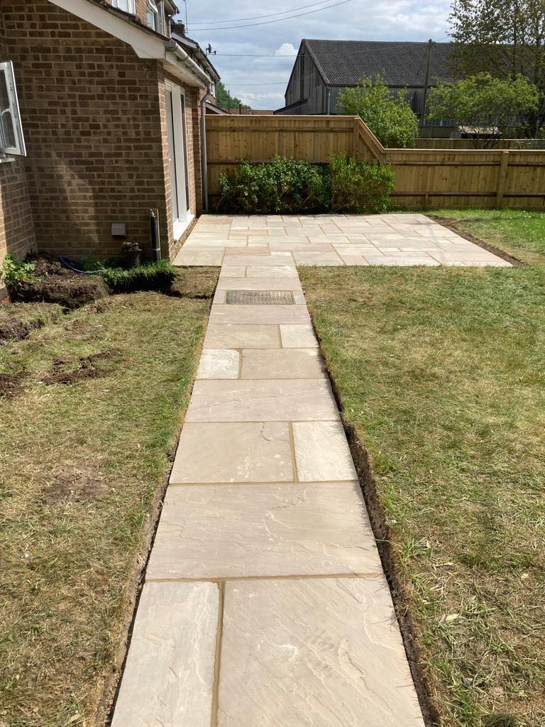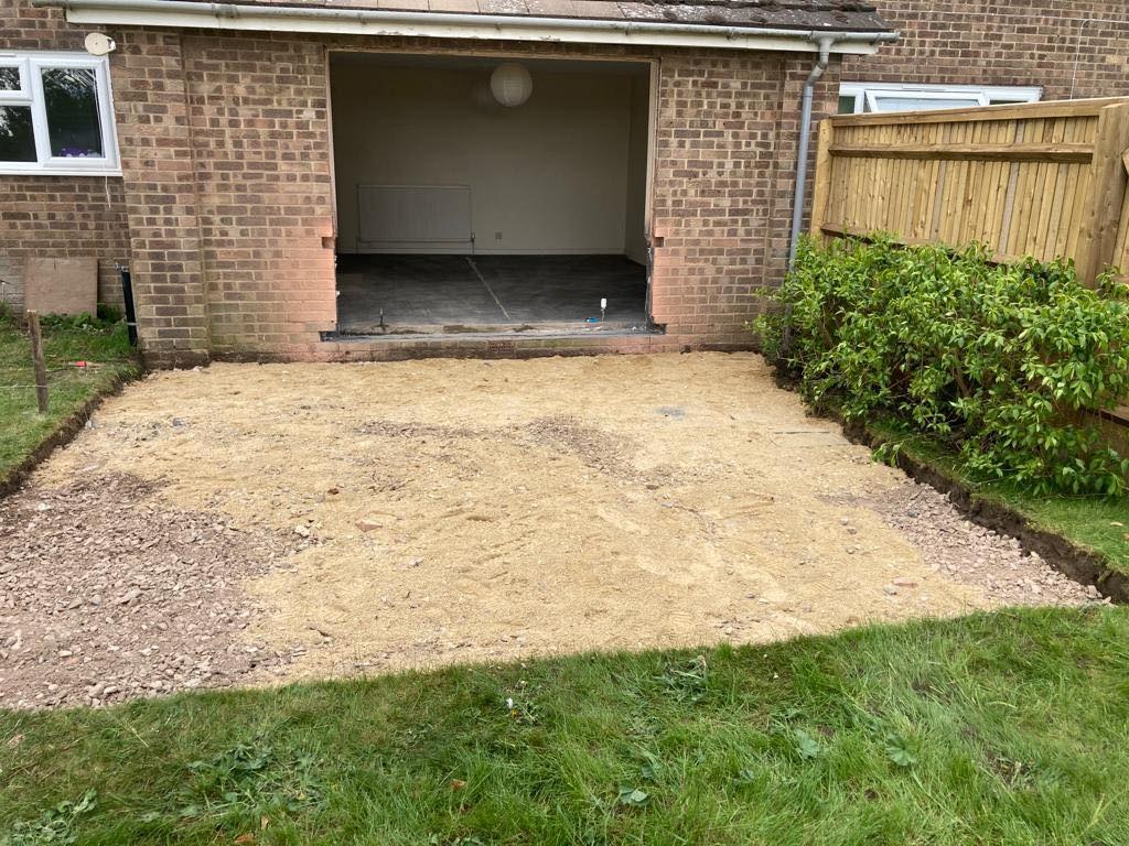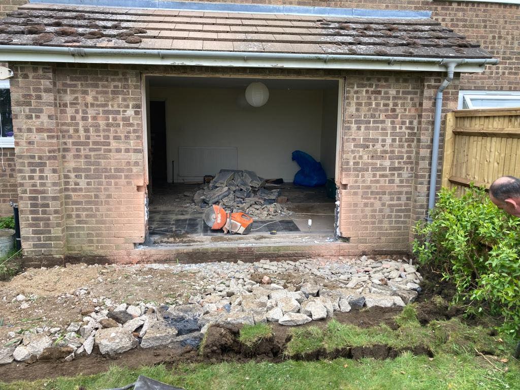 Preparing the opening for new patio doors to be fitted and preparing and laying new path and patio, all ready to enjoy the sunshine