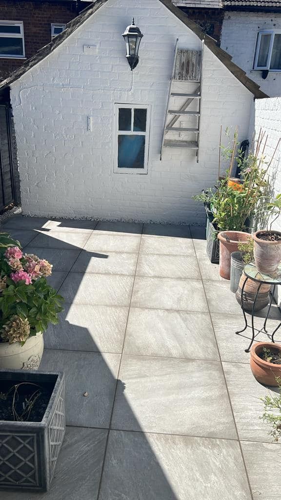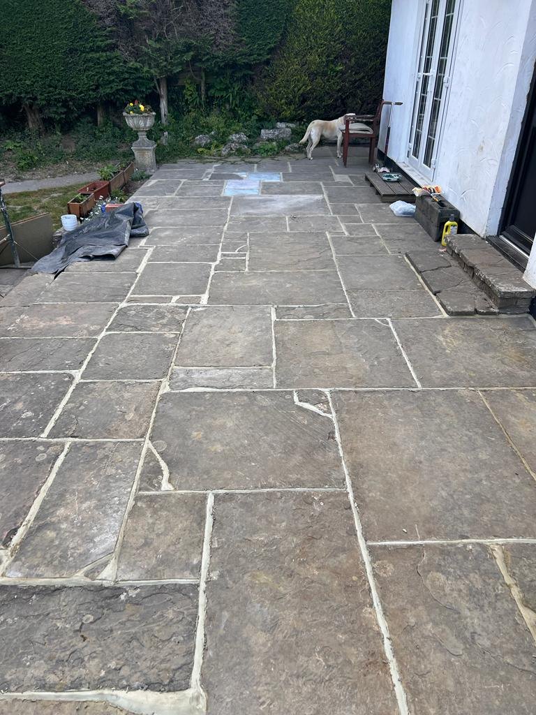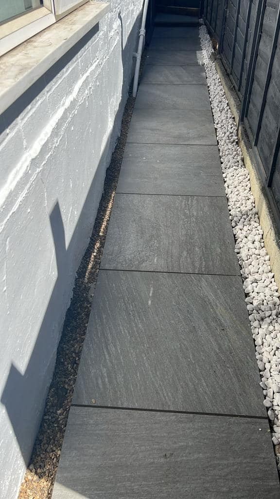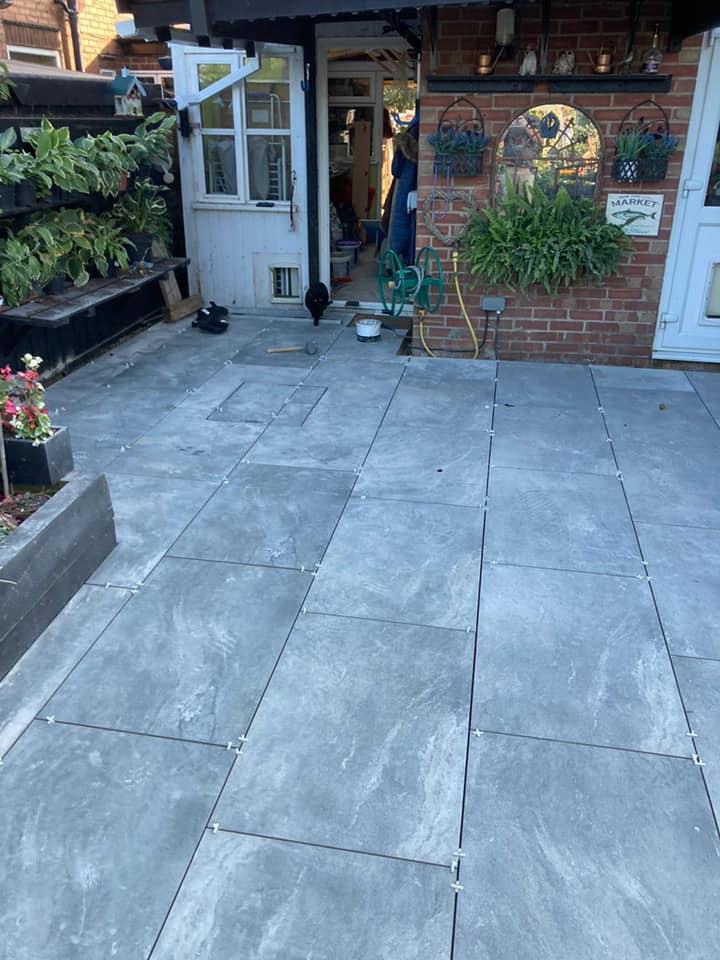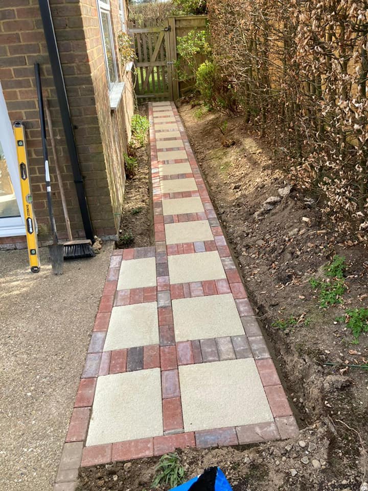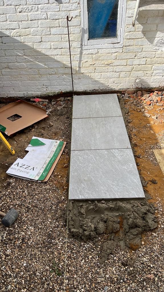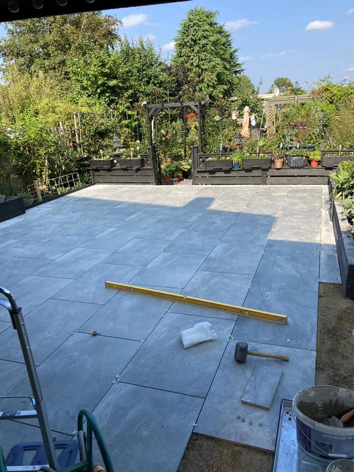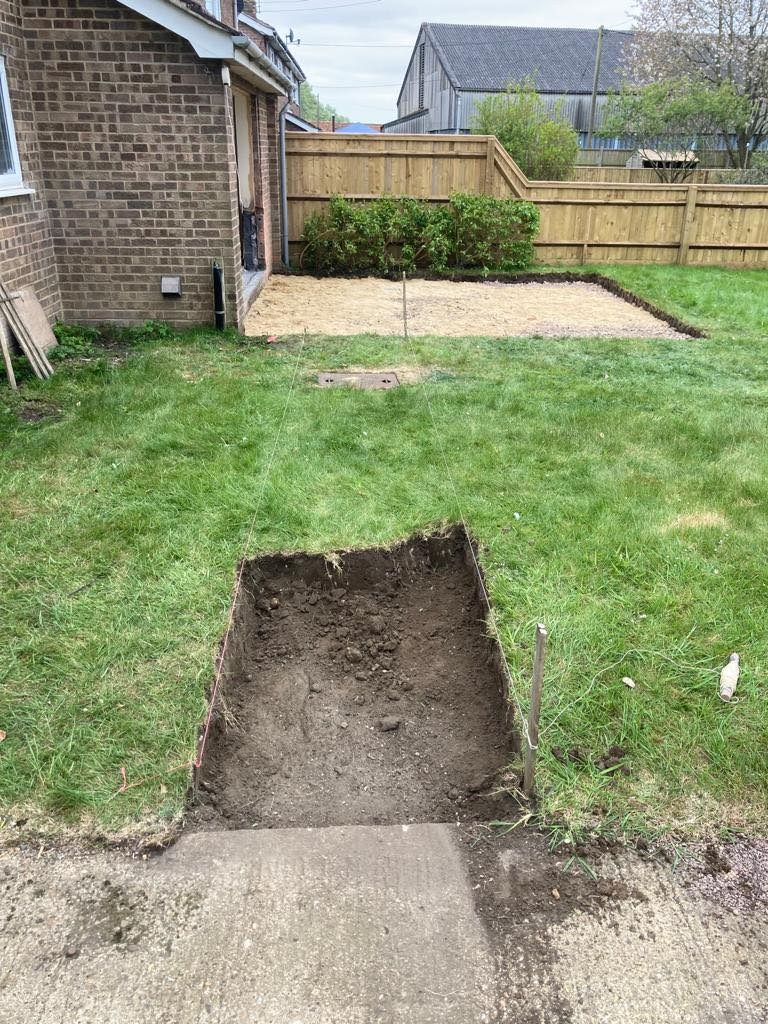 Preparing the opening for new patio doors to be fitted and preparing and laying new path and patio, all ready to enjoy the sunshine