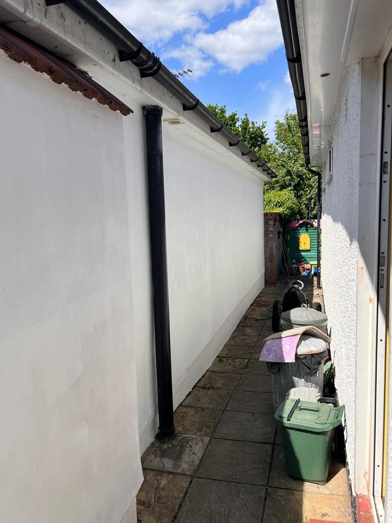 A job we completed over the weekend, replacement of rotten ply, colour match paint (as far as we could) and reattach drain pipe.
