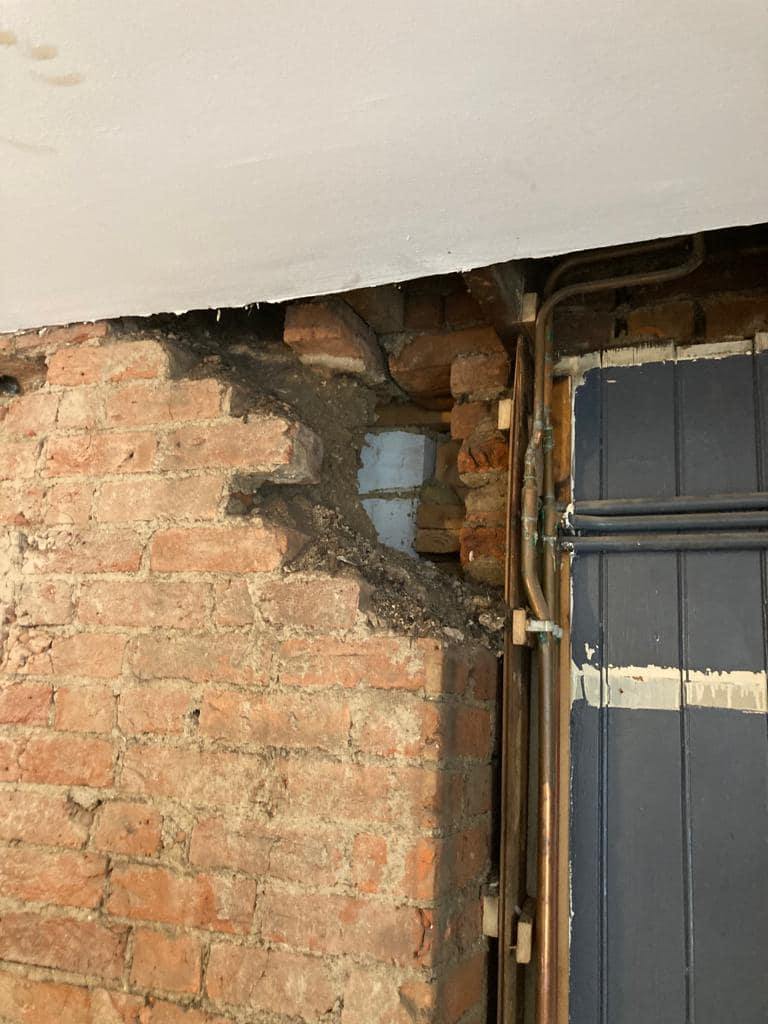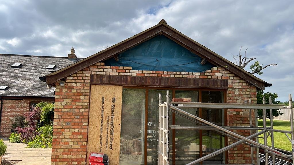 New lintel and rebuild of gable end, repoint patio, prep and repaint gates, replace bricks and reflaunch, entrance walls, replace blown windows and french doors, renovated kitchen work top (including replacing section behind sink)
