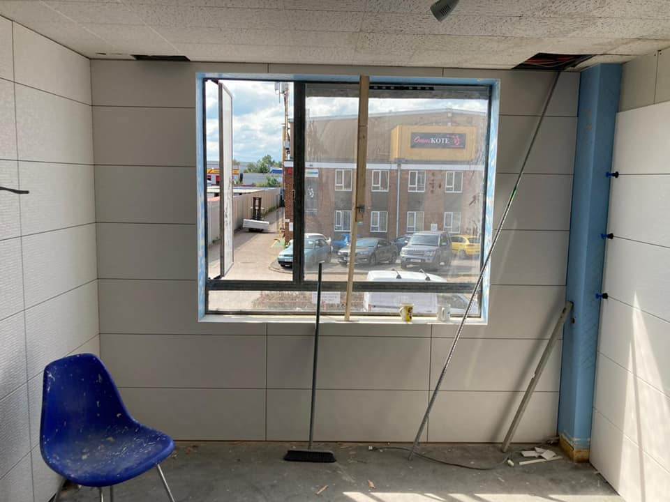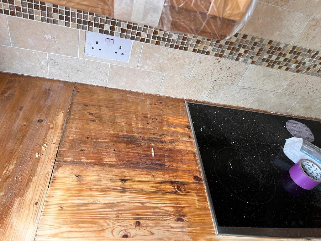 For this client we levelled and tiled the kitchen floor, replaced failed tiles around bathroom window and tiled their utility room splash back.