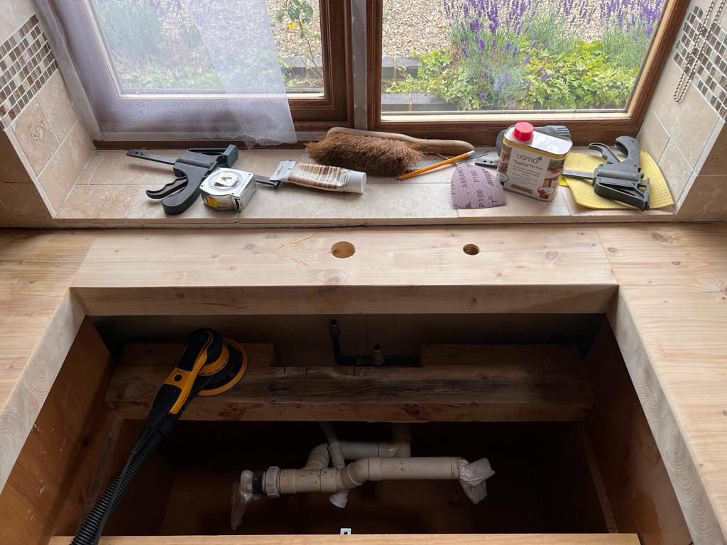A job we completed over the weekend, replacement of rotten ply, colour match paint (as far as we could) and reattach drain pipe.