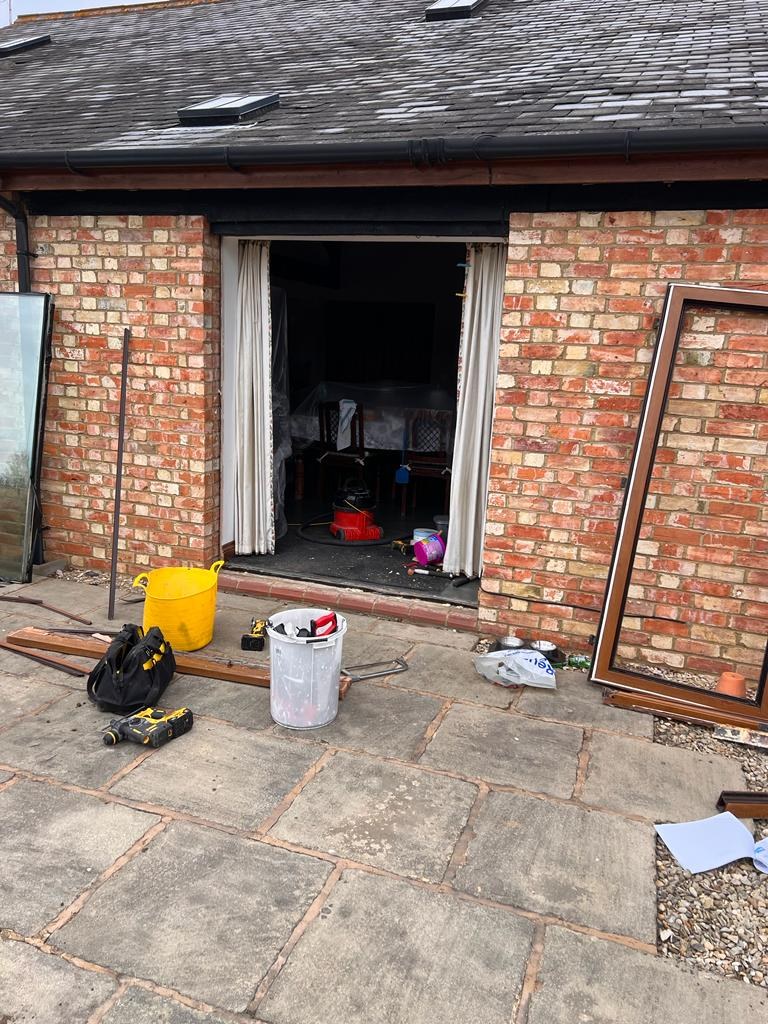 Preparing the opening for new patio doors to be fitted and preparing and laying new path and patio, all ready to enjoy the sunshine