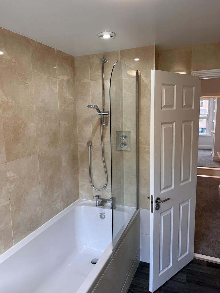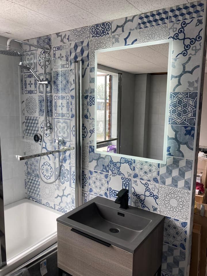 Great team effort to take up this cracked shower tray, replace the gully, screed and lay mosaic tiles and at the same time take up the flooring, dry-out, screed and replace with lovely fresh flooring in a client’s en-suite.